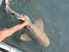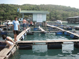 This island we just hopped off the side of the speedboat and snorkeled around. It was amazing. The coral was beautiful and there were fish absolutely everywhere. We were only there for about fifteen minutes and I wanted to stay longer. It was gorgeous. After that, we went to a fish farm about five hundred meters off the shore of another little island. The first picture on my blog is the picture of the fish farm. Tiny little boards separating roped off sections in the ocean where all kinds of creatures existed. The picture and that description about sum it up. I inched my way across the boards, taking about five minutes to get anywhere as the waves made them rock back and forth and my own natural clumsiness made me a little worried about falling into one of the nets. I soon discovered that while most of the nets held fish, some did not. Our guide stopped by one of the net areas and started pulling the net up. It turned out two tiger sharks and two huge sea turtles were lounging on the bottom of the net. About six inches above the water, I was a little afraid for my life as the sharks started cresting the surface, let alone falling in. After awhile, they settled back down and we decided to keep moving. I shuffled out on to one of the boards and realized that I had tiger sharks on one side of me and nurse sharks on the other. One good wave would have finished me off. Our guide took pity on me and started leading me around, explaining what each of the fish were and making sure I didn't trip and fall in anywhere. He eventually let me back to the tiger sharks and when one of them went swimming by, he grabbed it by the fin and gestured to me, so I touched it. Sharks feel really smooth, by the way. After that experience, I was ready to head home. We all piled back on our speedboat and headed towards Koh Samet. I got dropped off at about waist level in the water and waded my way into shore, then went back to my little grungy yet oddly cute cabin to shower and change.
