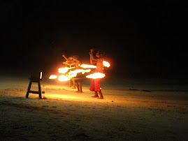 That night I went to Jep's for dinner. Jep's is a great restaurant tucked beneath trees but still right up against the beach. And they have fire shows every night. So as I ate whatever I ordered (something Greek with lots of potatoes that was absolutely amazing), I got to watch kids who looked to be about five and seven twirl fire. And wow were they good. I put a picture up on my blog so you'll have to check it out to really see, but it was amazing. I mean I spent the first ten minutes wondering where their mother was, but once I got over that impulse, it was a great show.